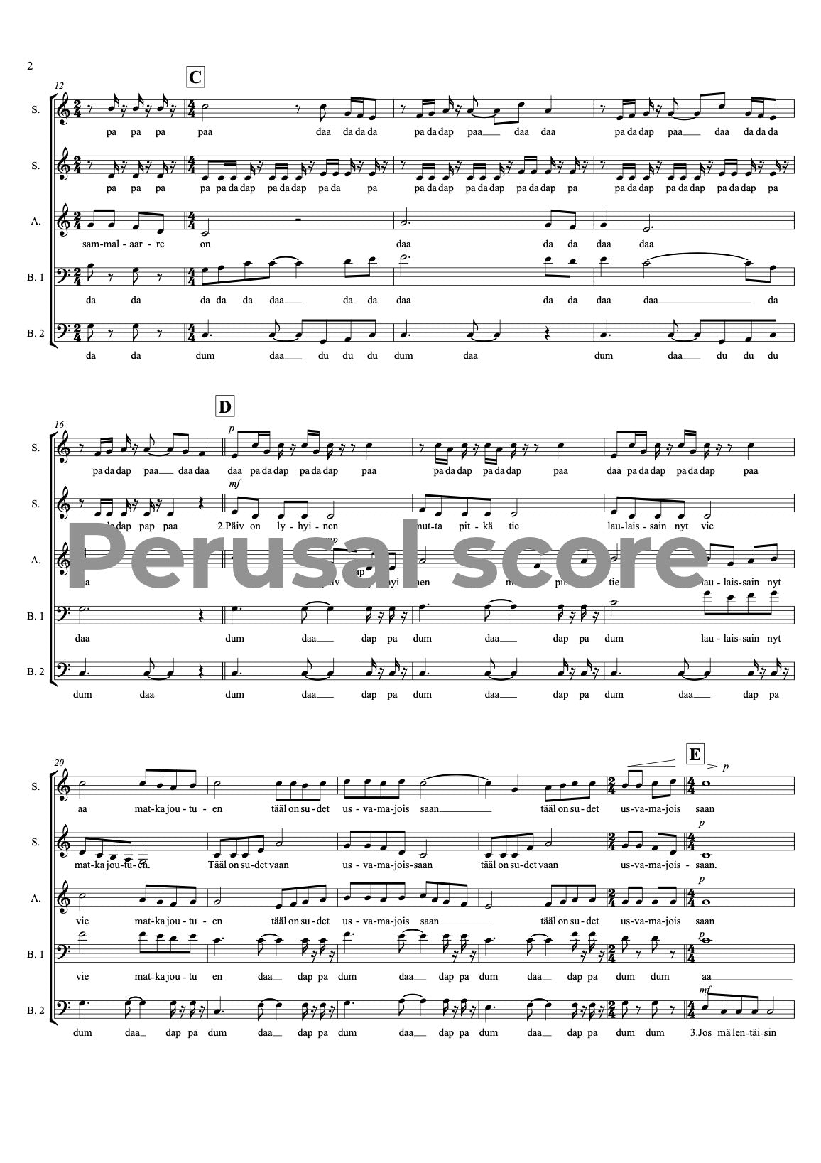 Finnish traditional folksong arranged for mixed choir or ensemble a capella.