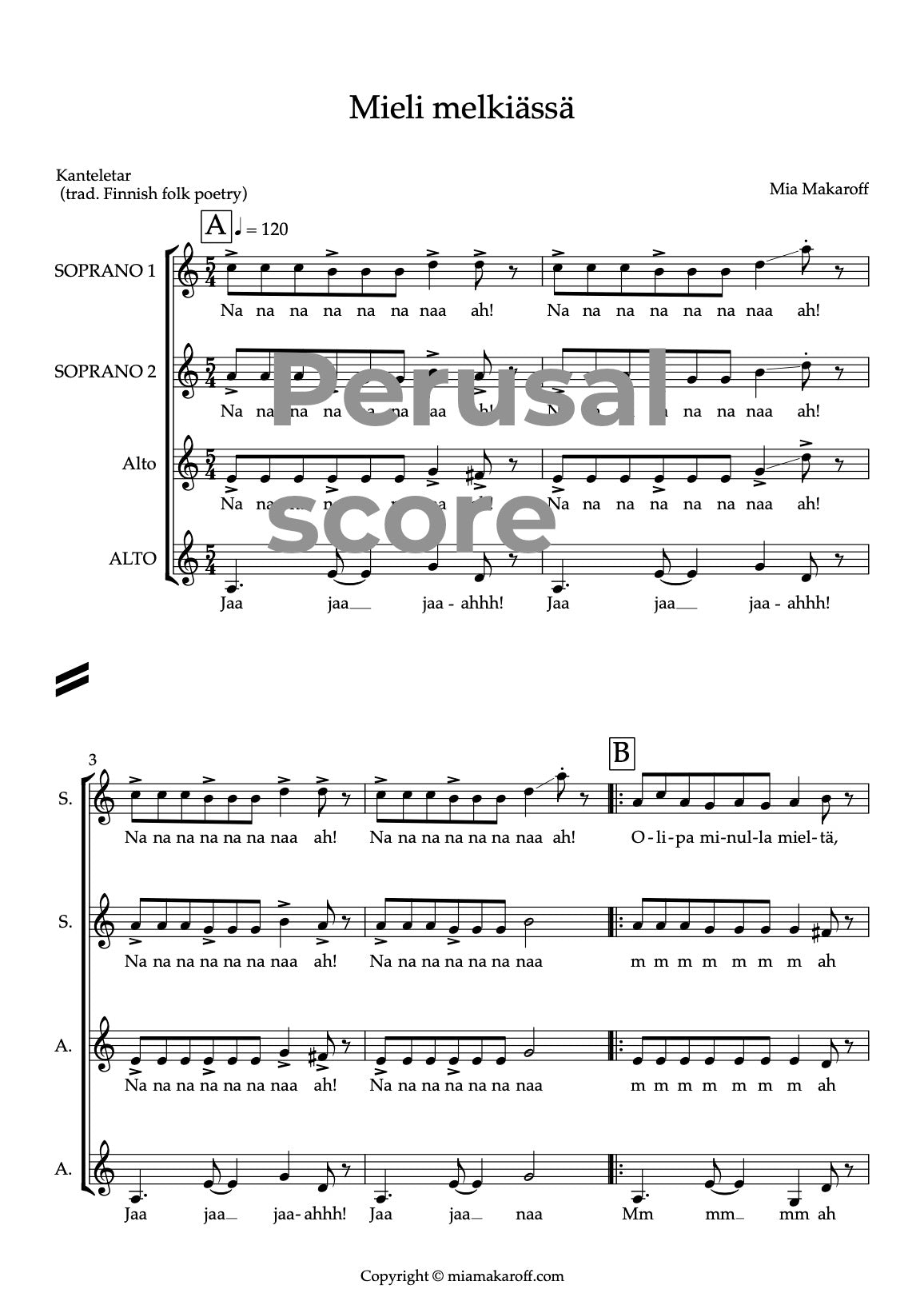 This strange Finnish folk poem describes a situation when your mind is somewhere else, gone with the wind. Maybe you are mad or having a brain fog? Mieli melkiässä is a female choir song written to Finnish folk poem from Kanteletar. The singer tells how she is totally out of her mind, going crazy.