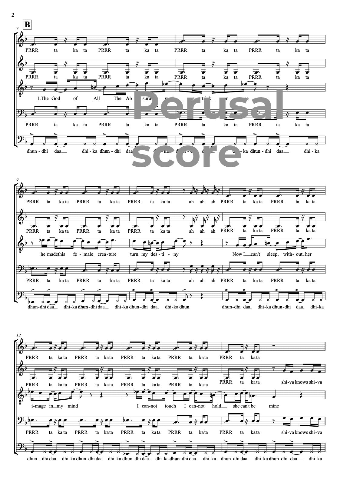 A fun and a bit crazy, rhythmical song trying humbly to capture some of the Bollywood style. Originally written for a vocal group Shiva knows. This group also made a very successful recording of the song as you can hear in the sample.